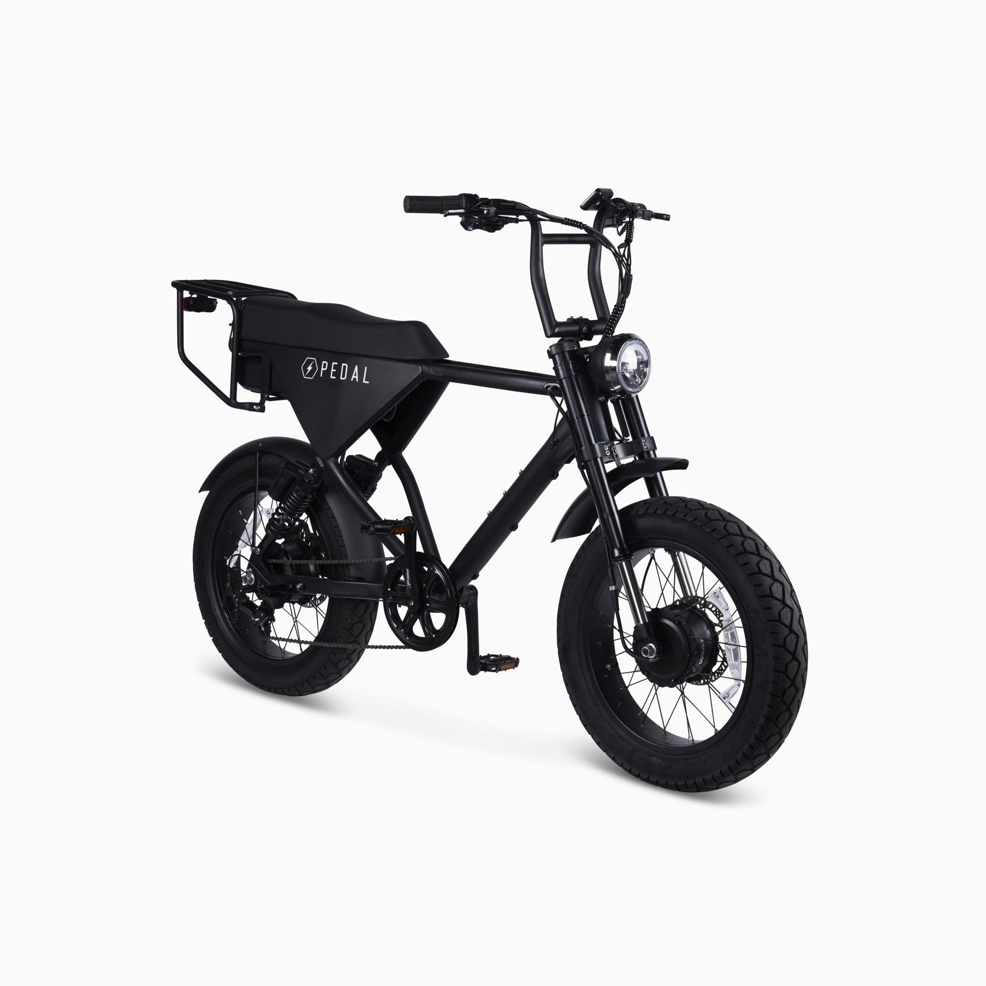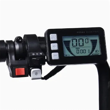 Do more with a display system that intuitively gives your adventure the capability to last longer. Each PEDAL bike comes programmed with a range of functions to utilize depending on how you'll use it. Features include: battery level status, 5 level pedal assist control, headlight button, turn signals and drive mode switch.