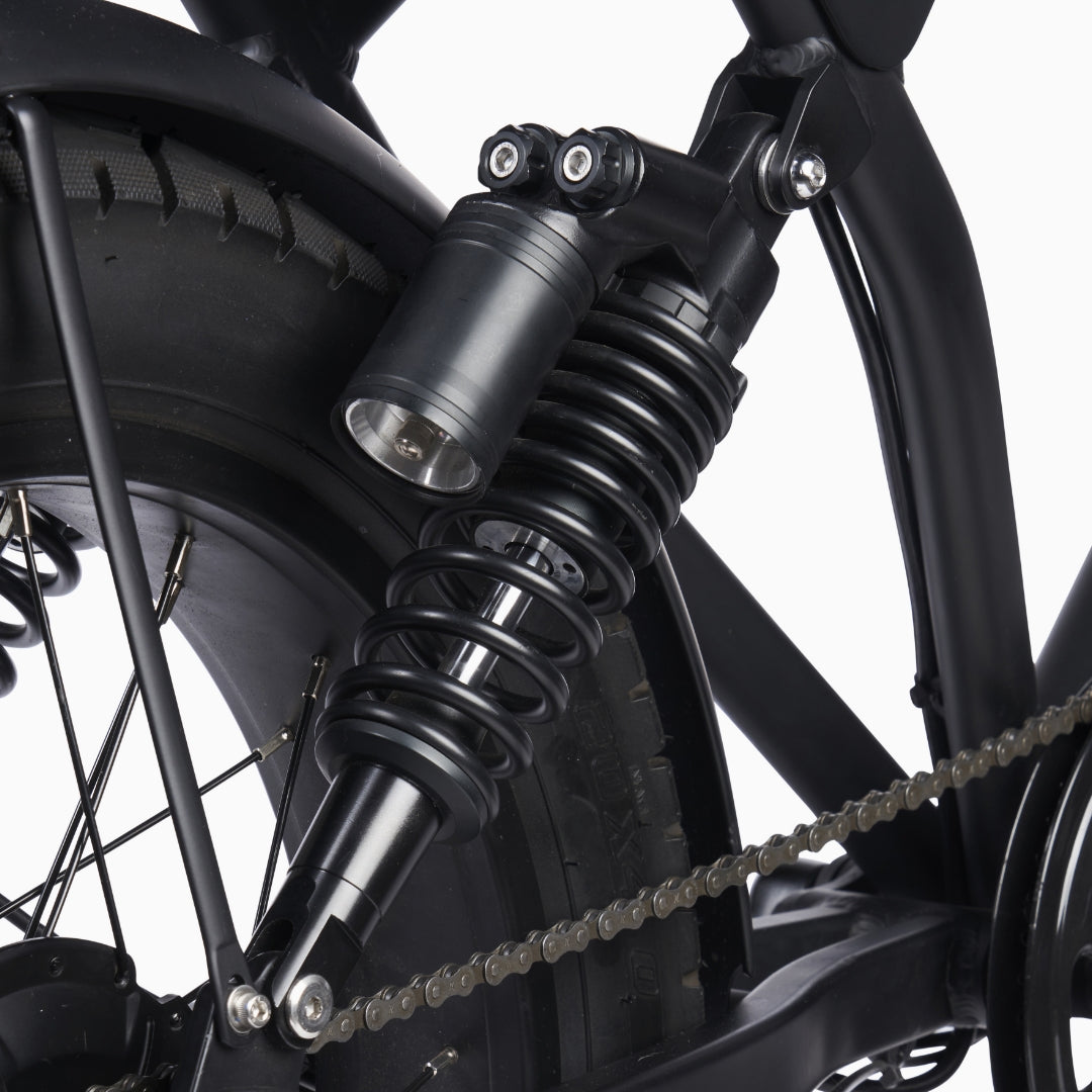 Our Rear Suspension features an advanced adjustable dual shock absorption system. Ideal for mountain/off roading adventures with complex terrain.